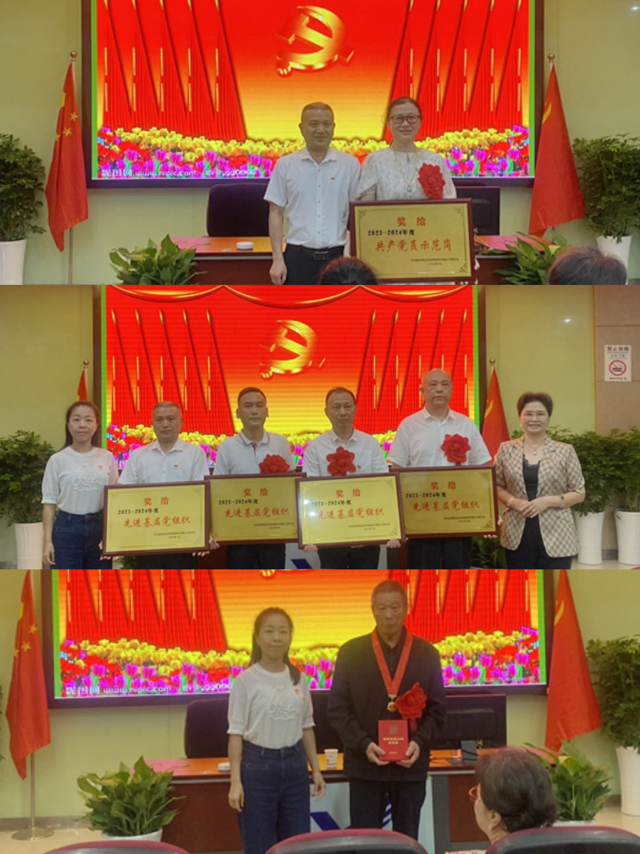 大會現(xiàn)場為受到表彰的12名優(yōu)秀共產黨員、5名優(yōu)秀黨務工作者、1個共產黨員示范崗、4個先進基層黨組織頒獎;為到會的“光榮在黨50年”老黨員陳春生頒發(fā)了紀念章。