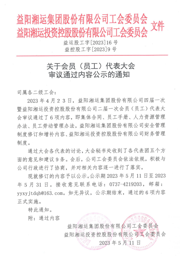 關(guān)于會(huì)員(員工)代表大會(huì)審議通過(guò)內(nèi)容的公示