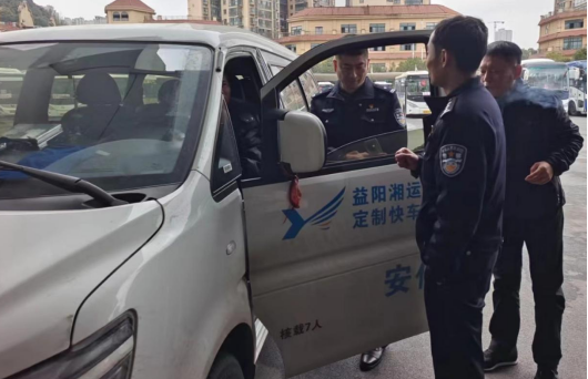 12月15日,湖南省高速公路交通警察局益陽支隊(duì)朝陽大隊(duì)中隊(duì)長曹卓林、孫飛虎檢查益陽市東方旅游巴士有限公司交通安全生產(chǎn)工作。公司經(jīng)理宋新等陪同。