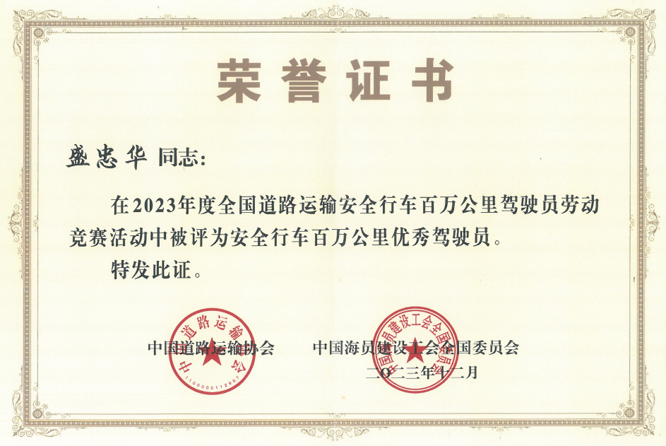 益陽唯一!盛忠華榮獲全國(guó)優(yōu)秀駕駛員稱號(hào)